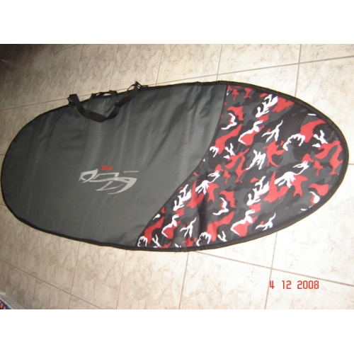 Pokrowiec wykonany z materiałów odpornych na rozerwanie. Spód z materiału metalizującego, odbijającego promienie słoneczne. Przy zamku, wstawiony specjalny ochraniacz mający zabezpieczyć deskę od uszkodzeń przez zamek. W komplecie pasek na ramię. Wypełnieni – utwardzona pianka 6 mm.Możliwe zamówienie koloru
